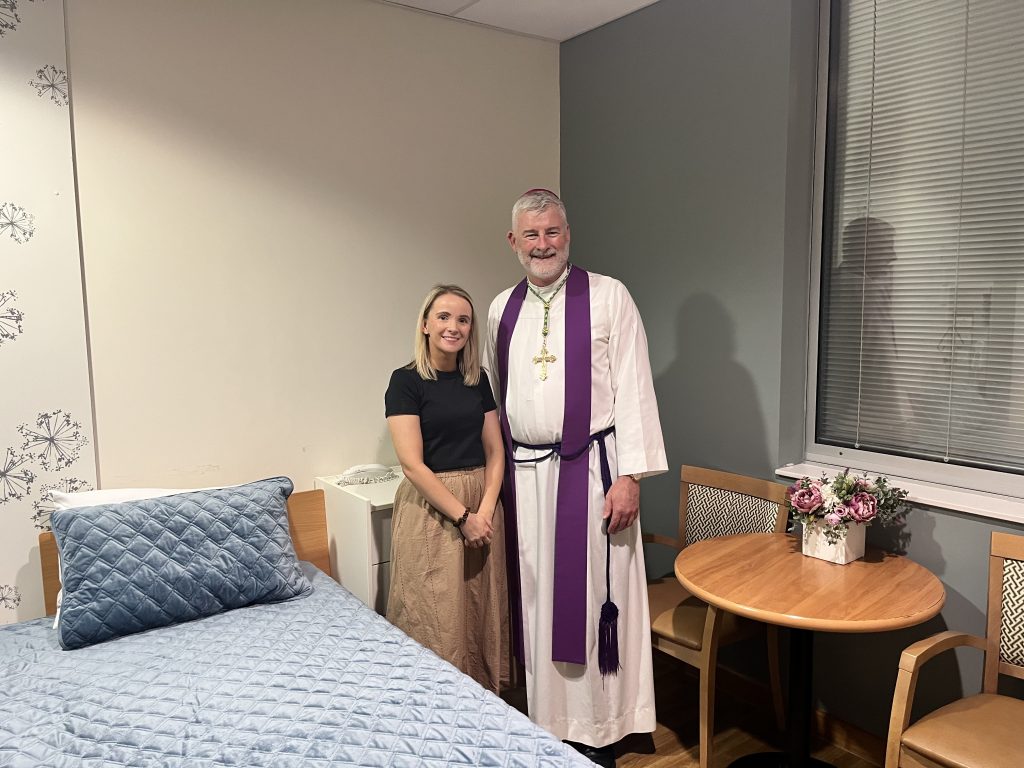 At St Vincent’s Private Hospital Brisbane, the hospital’s first Cuddle Bed was recently blessed as part of a new family space within the palliative care ward.