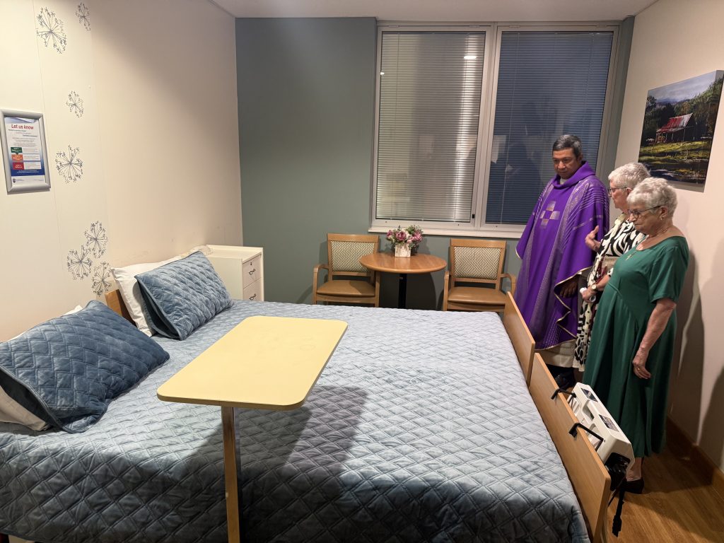 At St Vincent’s Private Hospital Brisbane, the hospital’s first Cuddle Bed was recently blessed as part of a new family space within the palliative care ward.